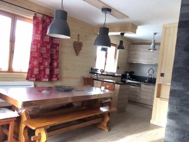 Cette jolie pièce à vivre a su par sa décoration allier le style montagnard et la modernité.