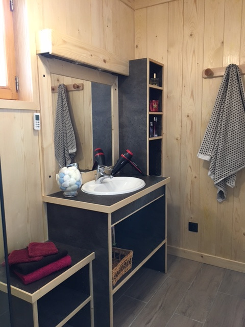 Cette jolie pièce à vivre a su par sa décoration allier le style montagnard et la modernité.