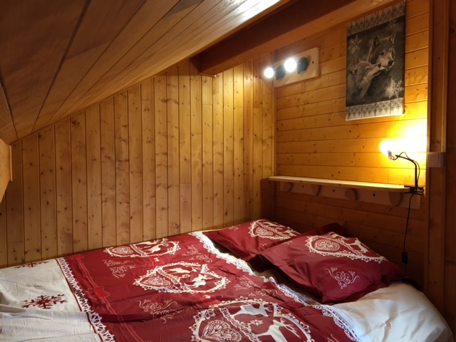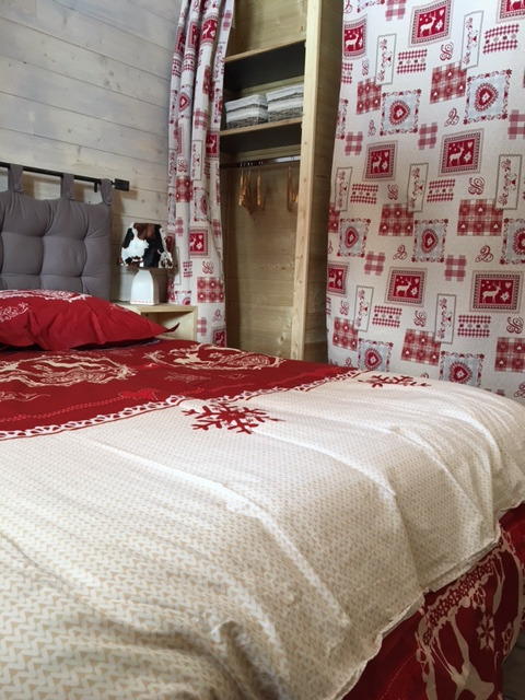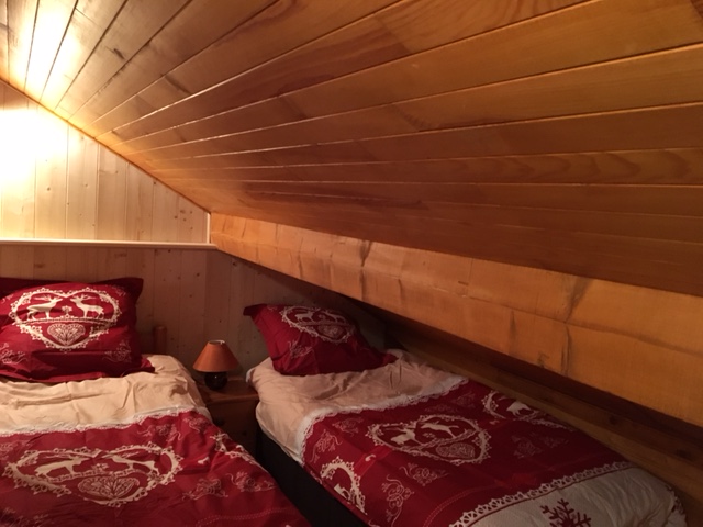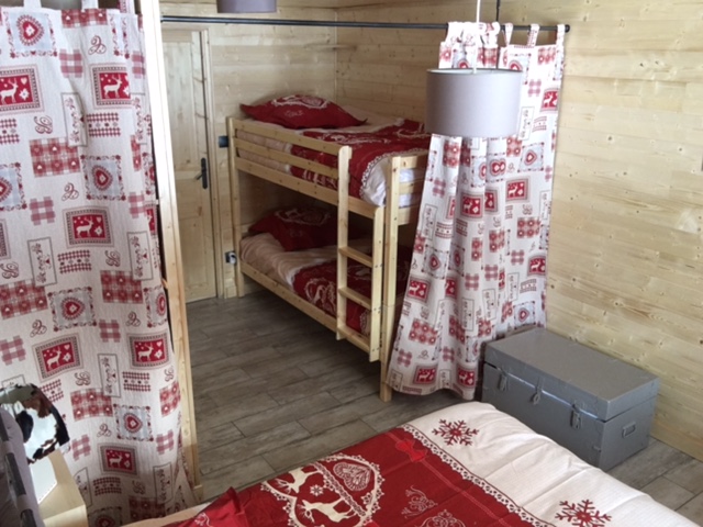 Composée de 2 lits 2 personnes séparée par un rideau pour garder un minimum d'intimité.