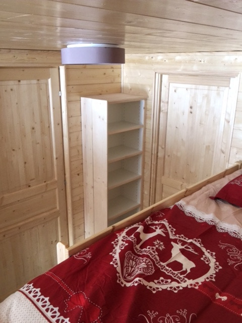 Des meubles bas vous permettent de ranger vos affaires personnelles. Des barres avec des cintres seront disponibles vers chaque lit.